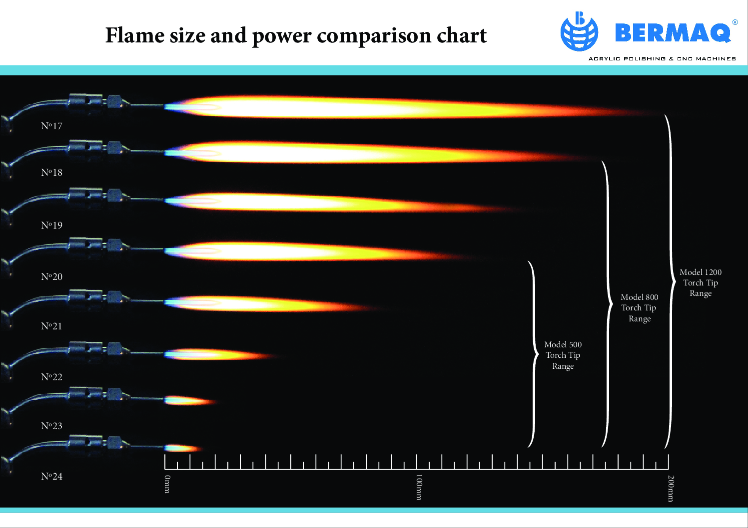 BERMAQ posiada kilka modeli, takich jak maszyny do polerowania płomieniowego PF oraz inne polerki płomieniowe do mikrospawania i polerowania płomieniowego części akrylowych.